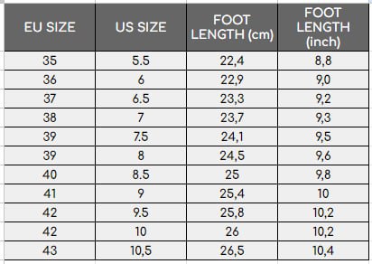 Note: If your feet are too wide, please increase one size, if your feet are too narrow, please order according to the normal size